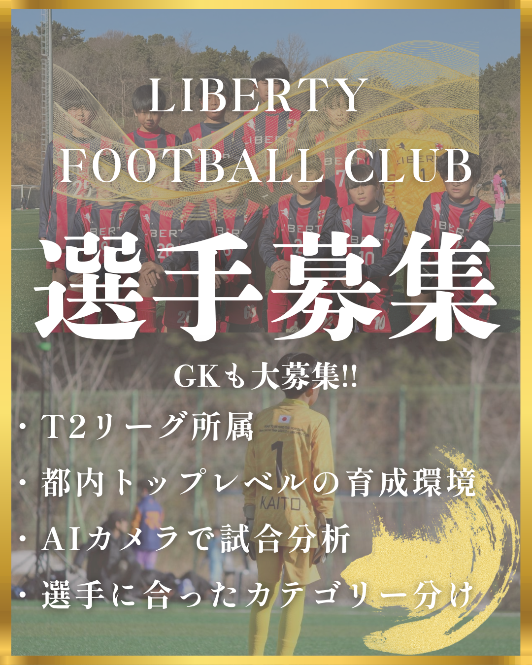 この度、LIBERTY FOOTBALL CLUBでは、新規選手を募集しております。